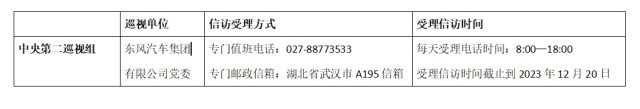 日前,二十屆中央第二輪巡視的15個巡視組陸續(xù)進駐被巡視單位黨組織開展巡視工作。截至目前,中央巡視組已進駐東風汽車集團有限公司,并公布了信訪聯(lián)系方式。