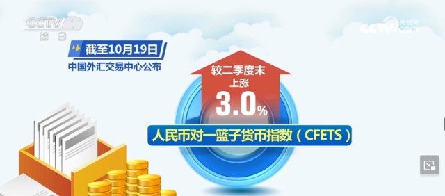 國家外匯管理局10月20日公布我國三季度外匯數(shù)據(jù),截至10月19日,中國外匯交易中心公布的人民幣對一籃子貨幣指數(shù)(CFETS)較二季度末上漲3.0%。我國穩(wěn)經(jīng)濟政策持續(xù)發(fā)力并逐步顯效,人民幣對美元匯率略有貶值,對歐元、英鎊、日元等主要貨幣有所升值。人民幣匯率在全球貨幣中表現(xiàn)穩(wěn)健。