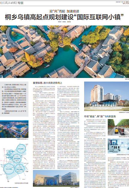 11月1日,《浙江日報》整版刊發(fā)《迎“風”而起 加速前進桐鄉(xiāng)烏鎮(zhèn)高起點規(guī)劃建設(shè)“國際互聯(lián)網(wǎng)小鎮(zhèn)”》,全文如下: