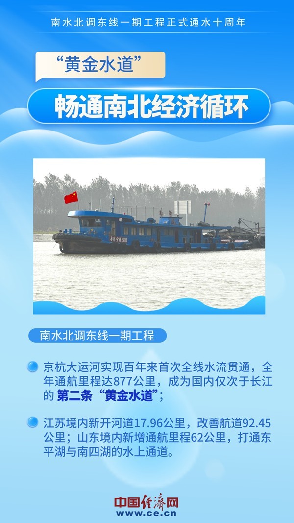 2013年11月15日,南水北調(diào)東線一期工程正式通水。通水10年來(lái),東線一期工程累計(jì)抽引江水400多億立方米,調(diào)入山東省水量61.4億立方米,有效緩解了南水北調(diào)東線沿線受水區(qū)缺水問(wèn)題,受益人口超6800萬(wàn)人,成為優(yōu)化水資源配置、保障群眾飲水安全、復(fù)蘇河湖生態(tài)環(huán)境、暢通南北經(jīng)濟(jì)循環(huán)的生命線。