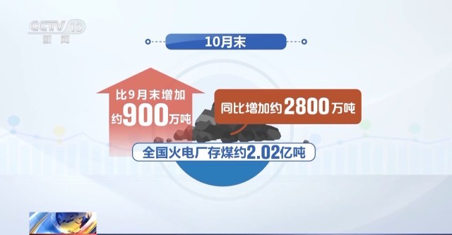中國(guó)煤炭工業(yè)協(xié)會(huì)數(shù)據(jù)顯示:10月末,全國(guó)火電廠存煤約2.02億噸,比9月末增加約900萬噸、同比增加約2800萬噸,存煤可用約34天,存煤創(chuàng)歷史新高。