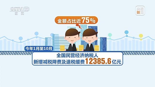 我國延續(xù)、優(yōu)化的這批階段性稅費優(yōu)惠政策中,民營經(jīng)濟納稅人是主要受益對象。國家稅務(wù)總局數(shù)據(jù)顯示,今年1月至10月,全國民營經(jīng)濟納稅人新增減稅降費及退稅緩費12385.6億元,金額占比近75%。