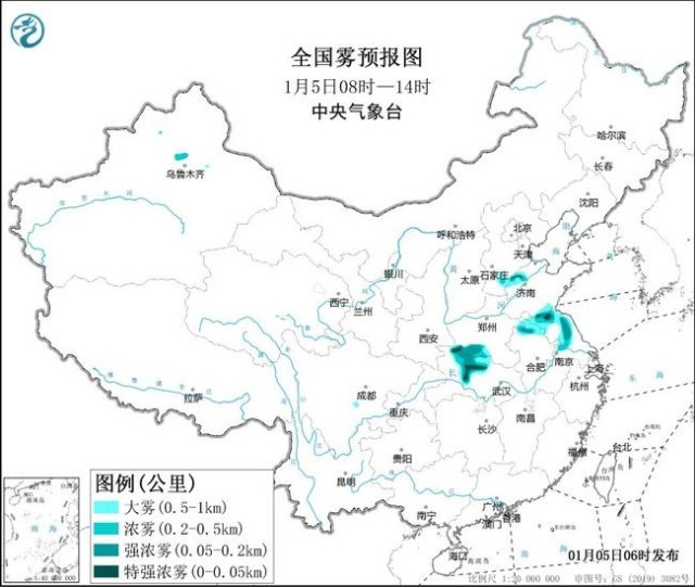 中央氣象臺(tái)1月5日06時(shí)繼續(xù)發(fā)布大霧黃色預(yù)警:
