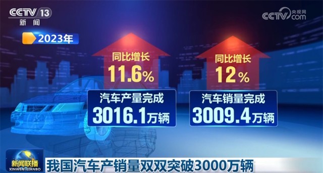 中國(guó)汽車工業(yè)協(xié)會(huì)今天發(fā)布的數(shù)據(jù)顯示,2023年,我國(guó)汽車產(chǎn)銷量首次雙雙突破3000萬輛,創(chuàng)歷史新高。