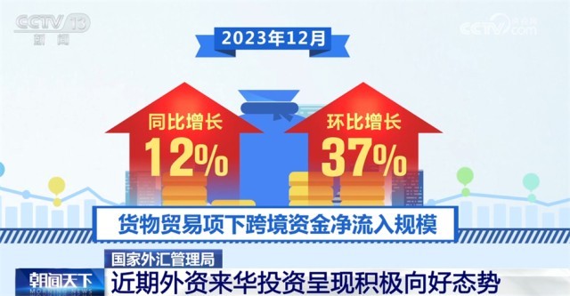 國(guó)家外匯管理局?jǐn)?shù)據(jù)顯示,2023年12月,我國(guó)貨物貿(mào)易保持較高規(guī)模資金凈流入,近期外資來(lái)華投資呈現(xiàn)積極向好態(tài)勢(shì)。