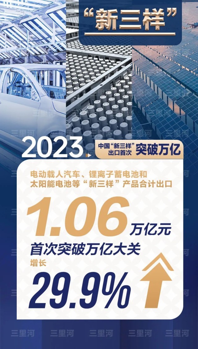 活力來自新動能——制造業(yè)技改投資增長3.8%,高技術(shù)產(chǎn)業(yè)投資增長10.3%,快于全部固定資產(chǎn)投資的增速。2023年電動載人汽車、鋰電池和太陽能電池等“新三樣”產(chǎn)品合計出口1.06萬億元,首次突破萬億大關(guān)。中國經(jīng)濟(jì)在加快培育新質(zhì)生產(chǎn)力中不斷發(fā)展壯大。