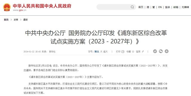 近日,中共中央辦公廳、國(guó)務(wù)院辦公廳印發(fā)了《浦東新區(qū)綜合改革試點(diǎn)實(shí)施方案(2023-2027年)》。