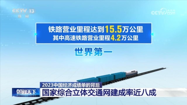 鐵路營(yíng)業(yè)里程達(dá)15.5萬(wàn)公里,其中,高速鐵路營(yíng)業(yè)里程4.2萬(wàn)公里,居世界第一;公路通車(chē)?yán)锍?35.5萬(wàn)公里,其中,高速公路建成里程17.7萬(wàn)公里,也居世界第一。