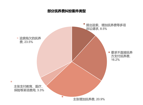 部分撫養(yǎng)費(fèi)糾紛案件類型。北京青少年法律援助與研究中心供圖