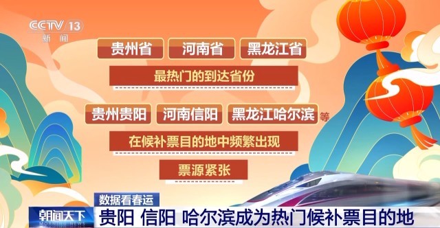 貴州省、河南省、黑龍江省是最熱門的到達省份。貴州貴陽、河南信陽、黑龍江哈爾濱等在候補票目的地中頻繁出現,票源緊張。