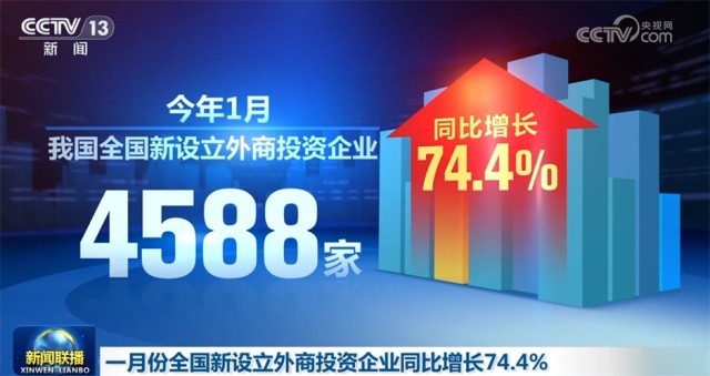 今年1月,我國全國新設(shè)立外商投資企業(yè)4588家,同比增長74.4%。制造業(yè)實際使用外資金額增長20.5%,其中高技術(shù)制造業(yè)實際使用外資增長40.6%。