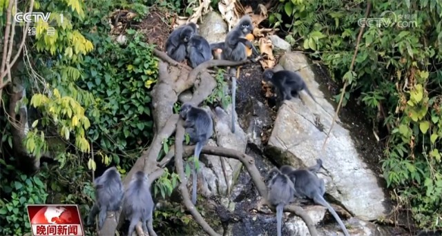原來爭相帶娃是菲氏葉猴家族獨特的育兒方式。菲氏葉猴聚群而居,每個家庭成員都想和“小金猴”有更多親密接觸。此外,據(jù)護林員介紹,這些菲氏葉猴還有著“謙謙君子”的美譽。