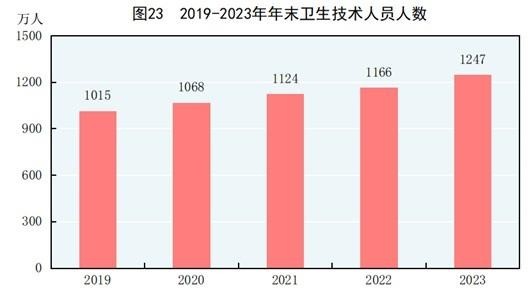 年末全國(guó)共有醫(yī)療衛(wèi)生機(jī)構(gòu)107.1萬(wàn)個(gè),其中醫(yī)院3.9萬(wàn)個(gè),在醫(yī)院中有公立醫(yī)院1.2萬(wàn)個(gè),民營(yíng)醫(yī)院2.7萬(wàn)個(gè);基層醫(yī)療衛(wèi)生機(jī)構(gòu)101.6萬(wàn)個(gè),其中鄉(xiāng)鎮(zhèn)衛(wèi)生院3.4萬(wàn)個(gè),社區(qū)衛(wèi)生服務(wù)中心(站)3.7萬(wàn)個(gè),門(mén)診部(所)36.2萬(wàn)個(gè),村衛(wèi)生室58.3萬(wàn)個(gè);專(zhuān)業(yè)公共衛(wèi)生機(jī)構(gòu)1.2萬(wàn)個(gè),其中疾病預(yù)防控制中心3426個(gè),衛(wèi)生監(jiān)督所(中心)2791個(gè)。衛(wèi)生技術(shù)人員1247萬(wàn)人,其中執(zhí)業(yè)醫(yī)師和執(zhí)業(yè)助理醫(yī)師478萬(wàn)人,注冊(cè)護(hù)士563萬(wàn)人。醫(yī)療衛(wèi)生機(jī)構(gòu)床位1020萬(wàn)張,其中醫(yī)院800萬(wàn)張,鄉(xiāng)鎮(zhèn)衛(wèi)生院151萬(wàn)張。全年總診療人次95.6億人次,出院人次3.0億人次。