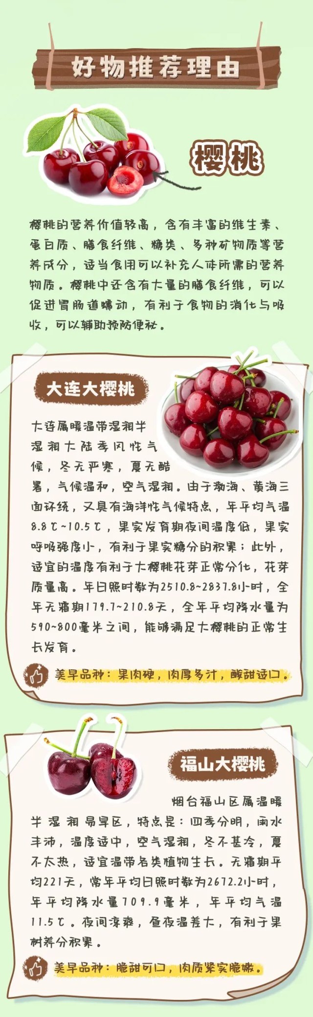 當(dāng)車?yán)遄舆@位水果刺客在市場慢慢消失的時候,中國本土的大櫻桃開始上市。櫻桃在北方號稱“早春第一果”。俗話說“櫻桃好吃樹難栽”,尤其是大櫻桃中的優(yōu)質(zhì)品種,它們對氣候、水土、溫濕度等諸多條件要求十分苛刻。得益于適宜的地理和氣候條件,甜櫻桃在中國形成了兩個較為集中的世界級優(yōu)勢產(chǎn)區(qū):以大連為主的遼寧地區(qū)和以煙臺為主的山東地區(qū)。