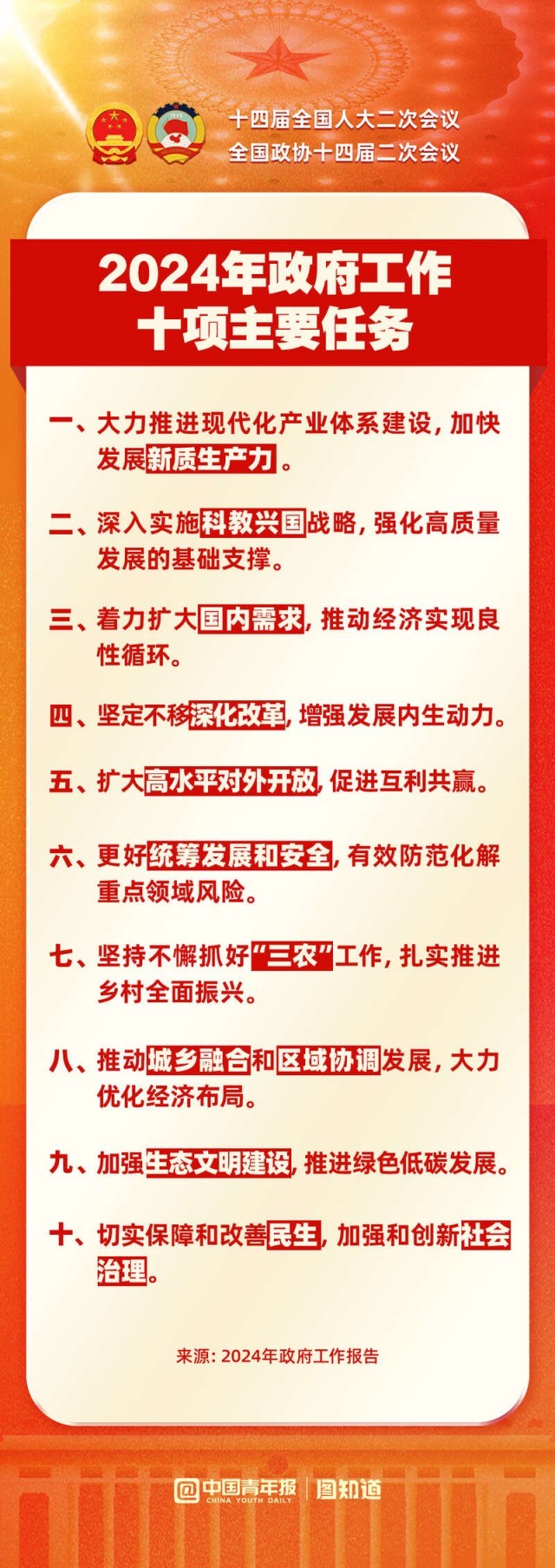 圖知道|政府工作報告:今年十大任務(wù),發(fā)展新質(zhì)生產(chǎn)力排首位