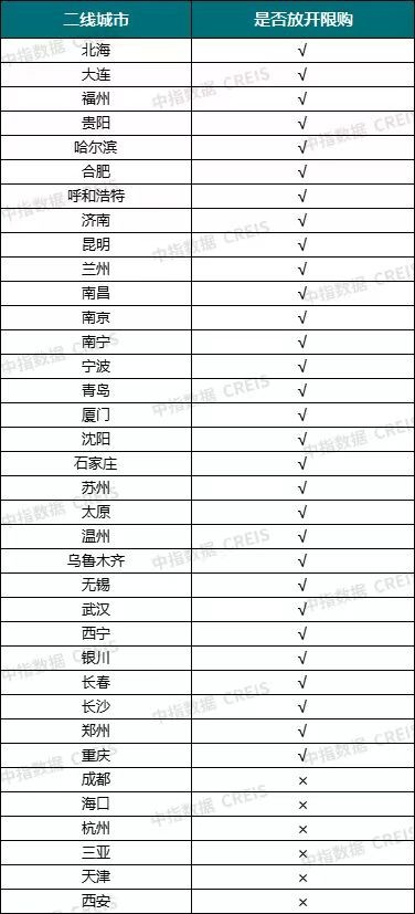 據(jù)中指研究院監(jiān)測數(shù)據(jù),截至目前,核心二線城市中,僅成都、海口、杭州、三亞、天津、西安保留部分限購政策。