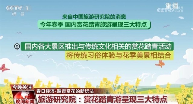 來自中國(guó)旅游研究院的消息,今年春季,國(guó)內(nèi)賞花踏青旅游呈現(xiàn)三大特點(diǎn):首先,除了常見的牡丹、桃花、油菜花之外,紫荊花、櫻桃花、馬蘭花等特色花種也受到游客關(guān)注;其次,國(guó)內(nèi)各大景區(qū)推出與傳統(tǒng)文化相關(guān)的賞花踏青活動(dòng),將傳統(tǒng)習(xí)俗體驗(yàn)與花季美景相結(jié)合;此外,游客也更加重視賞花旅途的舒適度和體驗(yàn)性,特色品質(zhì)小團(tuán)、私家團(tuán)等賞花線路訂單增加不少。