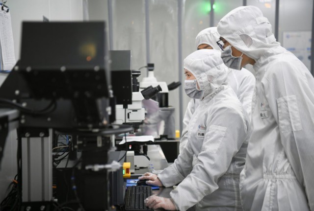 2024年3月4日,技術(shù)人員在陜西光電子先導(dǎo)院科技有限公司測(cè)試晶圓。新華社記者 張博文 攝