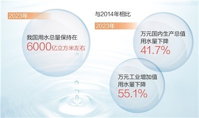 本報北京3月24日電 (記者王浩)記者近日從水利部獲悉:水利部門全面貫徹落實“節(jié)水優(yōu)先、空間均衡、系統(tǒng)治理、兩手發(fā)力”治水思路,推動用水方式向節(jié)約集約轉(zhuǎn)變。初步統(tǒng)計顯示,2023年我國用水總量保持在6000億立方米左右。這意味著,2014年以來,我國國內(nèi)生產(chǎn)總值增長近一倍的情況下,用水總量總體穩(wěn)定在6100億立方米以內(nèi);與2014年相比,2023年萬元國內(nèi)生產(chǎn)總值用水量、萬元工業(yè)增加值用水量分別下降41.7%、55.1%。全國用水“賬單”里的變與不變,反映了用水效率和效益持續(xù)提升,印證了發(fā)展質(zhì)量和效益不斷提高。