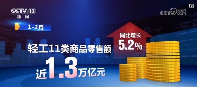 輕工消費(fèi)品市場活力逐步增強(qiáng)。前兩個月,輕工11類商品零售額近1.3萬億元,同比增長5.2%。輕工全行業(yè)出口額增長17.4%。