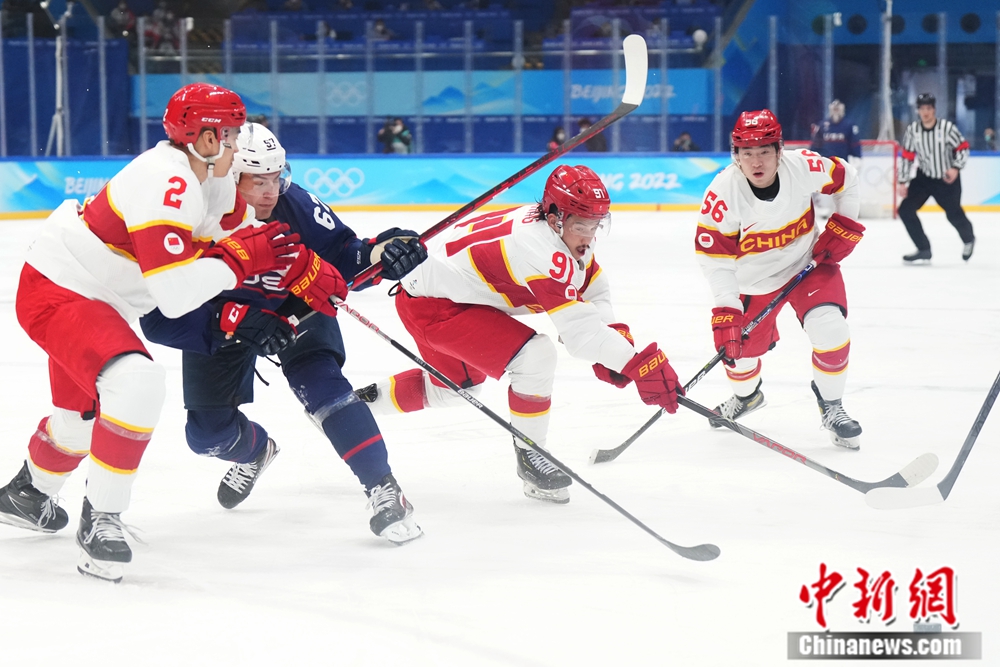 圖為冰球男子小組賽:中國(guó)隊(duì)對(duì)陣美國(guó)隊(duì)。中新社記者毛建軍攝