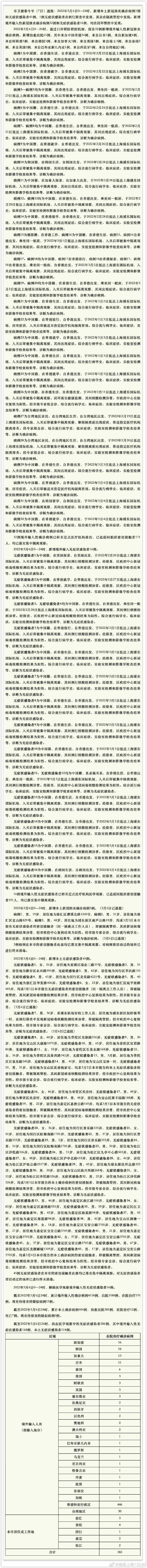 中新網(wǎng)3月7日電 據(jù)上海市衛(wèi)生健康委員會(huì)官方微博消息,3月6日0-24時(shí),上海新增本土確診病例3例和無(wú)癥狀感染者45例。