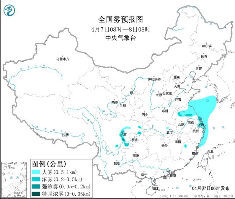 中新網(wǎng)4月7日電 據(jù)中央氣象臺(tái)網(wǎng)站消息,預(yù)計(jì)4月7日早晨至夜間,黃海中部和南部海域、東海西部海域、江蘇東部沿岸海域、長(zhǎng)江口附近海域、浙江東部沿岸海域、福建東北部沿岸海域?qū)⒂心芤?jiàn)度不足1公里的大霧天氣。此外,7日早晨至上午,四川盆地西部和南部、重慶中部、安徽北部、江蘇北部和東部、上海、浙江東北部等地的部分地區(qū)有大霧天氣,局地有能見(jiàn)度不足500米的濃霧(見(jiàn)圖1)。為此,中央氣象臺(tái)7日6時(shí)繼續(xù)發(fā)布大霧黃色預(yù)警。7日至9日,西南地區(qū)多陰雨,西藏東南部、四川南部、云南中西部和北部、貴州西部等地有中到大雨。