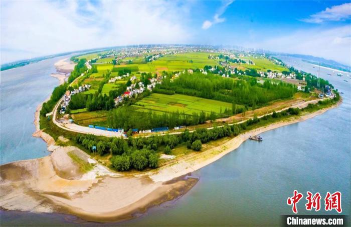 圖為航拍武漢至安慶段6米水深航道整治工程生態(tài)效果顯現(xiàn) 陳宇 攝