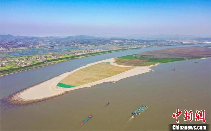中新網(wǎng)武漢4月26日電 (陳宇)正值春季,武漢至安慶段6米水深航道整治工程Ⅴ標段老虎灘生態(tài)固灘,水清岸綠、河暢景美、沙鷗翔集,整治工程生態(tài)建設(shè)效果初顯。