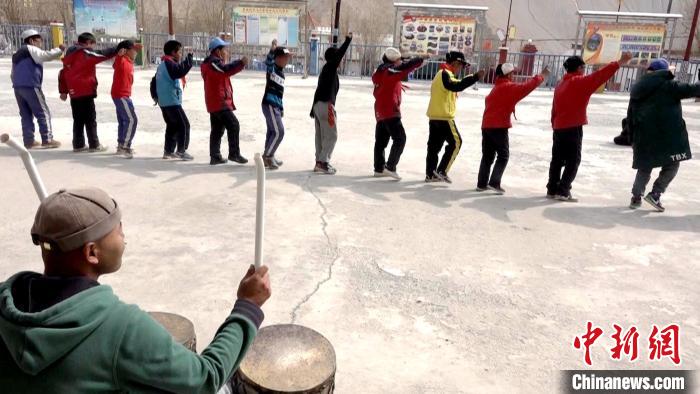 圖為多油完小學(xué)生在課余時(shí)間練習(xí)傳統(tǒng)非遺舞蹈“嘎爾”舞。 貢桑拉姆 攝