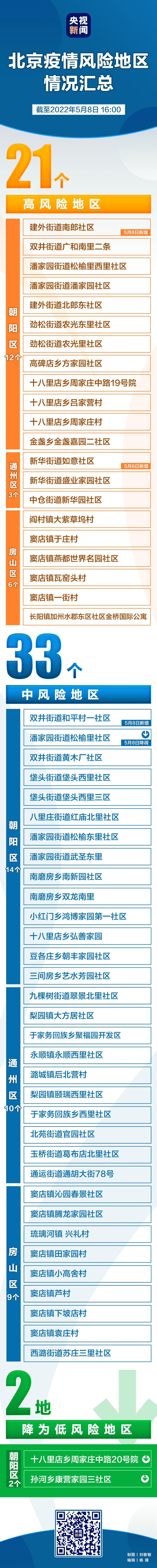截至目前,北京全市共有高風(fēng)險(xiǎn)地區(qū)21個(gè),中風(fēng)險(xiǎn)地區(qū)33個(gè)。