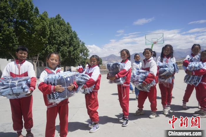 圖為拉薩市空港新區(qū)甲日小學(xué)學(xué)生們拿到新校服合影?!∝暩聛硭?攝