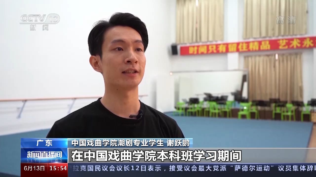 中國戲曲學院潮劇專業(yè)學生 謝躍鵬:本身我是武生行當,在中國戲曲學院本科班學習期間,我也是有意識在武戲方面下功夫,希望自己能學到更多規(guī)范性的動作,一些高難度技巧。我還希望盡自己所能,把這些知識傳承給更多年輕人,把更多的武戲呈現(xiàn)給觀眾。