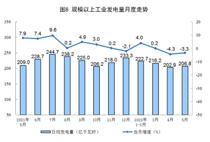 統(tǒng)計(jì)局:5月份發(fā)電6410億千瓦時(shí) 同比下降3.3%
