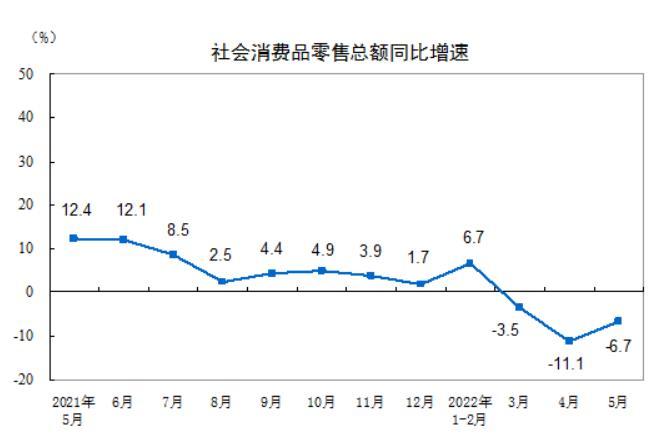 統(tǒng)計局:5月份消費同比下降6.7%,餐飲收入下降21.1%
