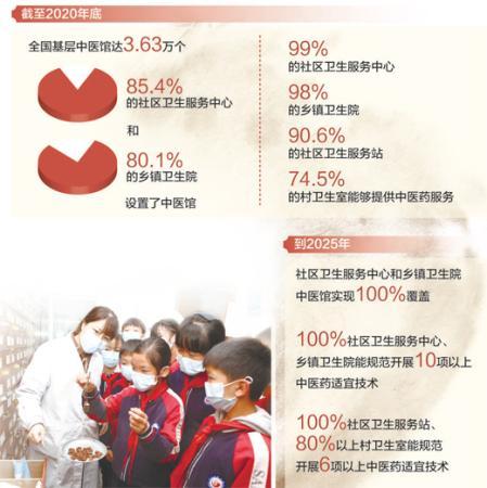 充分發(fā)揮中醫(yī)藥在基層健康服務中的獨特優(yōu)勢,中醫(yī)館的作用不容忽視。今年3月,國家中醫(yī)藥管理局等10部門聯(lián)合印發(fā)的《基層中醫(yī)藥服務能力提升工程“十四五”行動計劃》提出,到2025年,社區(qū)衛(wèi)生服務中心和鄉(xiāng)鎮(zhèn)衛(wèi)生院中醫(yī)館實現(xiàn)全覆蓋,鼓勵有條件的地方對15%的社區(qū)衛(wèi)生服務中心和鄉(xiāng)鎮(zhèn)衛(wèi)生院中醫(yī)館完成服務內(nèi)涵建設(shè)。