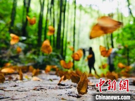 圖為金平縣的中國·紅河蝴蝶谷內(nèi)箭環(huán)蝶幼蟲在短時間大量集中羽化成蝶?!⑷疥?攝