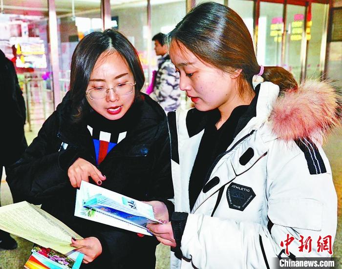 菏澤市返鄉(xiāng)創(chuàng)業(yè)服務中心工作人員為返鄉(xiāng)人員講解創(chuàng)業(yè)扶持政策。 菏澤市委宣傳部供圖。