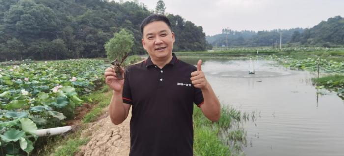 隨著鄉(xiāng)村振興全面推進(jìn),鄧述東又開(kāi)始打造“一畝田脫貧”模式升級(jí)版——“深耕一畝田”。2021年年初,鄧述東團(tuán)隊(duì)與企業(yè)合作,在湘潭縣梅林橋現(xiàn)代農(nóng)業(yè)示范園流轉(zhuǎn)耕地1100余畝(包含部分魚(yú)塘、荷塘),引進(jìn)廣東一家澳洲青蝦繁育企業(yè),采取“蓮+蝦”“稻+蝦”、水塘“魚(yú)+蝦”等模式進(jìn)行試驗(yàn)養(yǎng)殖,蝦苗成活率接近100%,成長(zhǎng)速度達(dá)到預(yù)期目標(biāo)。