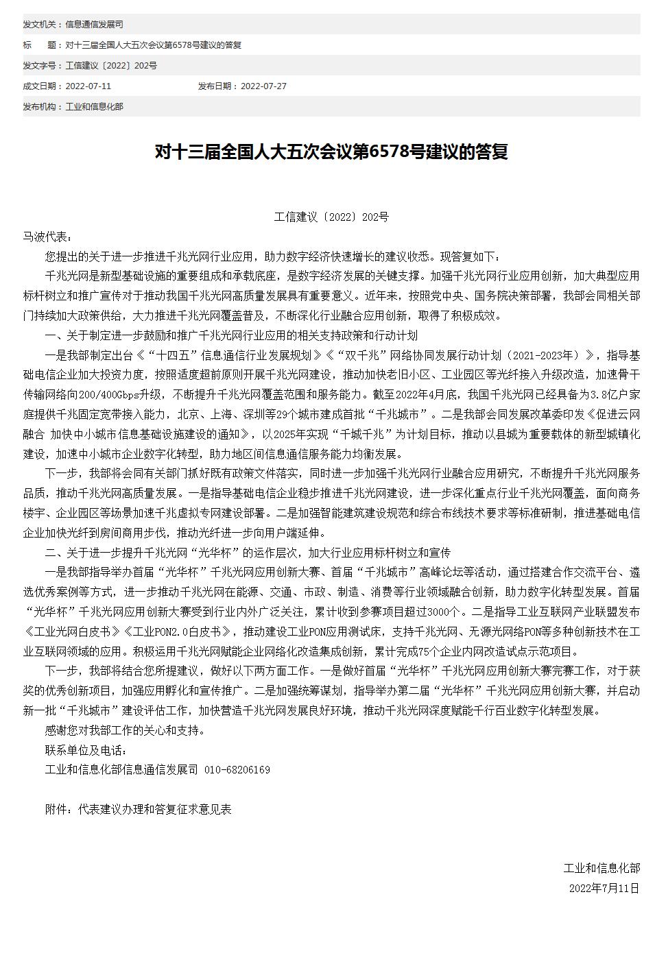 中新網(wǎng)7月27日電 工信部網(wǎng)站27日發(fā)布對十三屆全國人大五次會議第6578號建議的答復(fù)。工信部表示,下一步,將會同有關(guān)部門抓好既有政策文件落實,同時進一步加強千兆光網(wǎng)行業(yè)融合應(yīng)用研究,不斷提升千兆光網(wǎng)服務(wù)品質(zhì),推動千兆光網(wǎng)高質(zhì)量發(fā)展。一是指導(dǎo)基礎(chǔ)電信企業(yè)穩(wěn)步推進千兆光網(wǎng)建設(shè),進一步深化重點行業(yè)千兆光網(wǎng)覆蓋,面向商務(wù)樓宇、企業(yè)園區(qū)等場景加速千兆虛擬專網(wǎng)建設(shè)部署。二是加強智能建筑建設(shè)規(guī)范和綜合布線技術(shù)要求等標(biāo)準(zhǔn)研制,推進基礎(chǔ)電信企業(yè)加快光纖到房間商用步伐,推動光纖進一步向用戶端延伸。(中新財經(jīng))