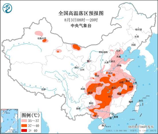 其中今天白天,北京平原地區(qū)、天津、河北、河南、山東、陜西南部、湖北、安徽、江蘇、上海、浙江、江西中北部、湖南、貴州東部和南部、重慶、四川東部、廣東西部、廣西等地有35℃以上高溫天氣,其中,河南中南部、安徽中南部、湖北、浙江中西部、江西北部、湖南、重慶、四川東部、廣西北部和西部等地部分地區(qū)最高氣溫37~39℃,重慶局地可達(dá)40℃以上。中央氣象臺(tái)今早繼續(xù)發(fā)布高溫黃色預(yù)警。