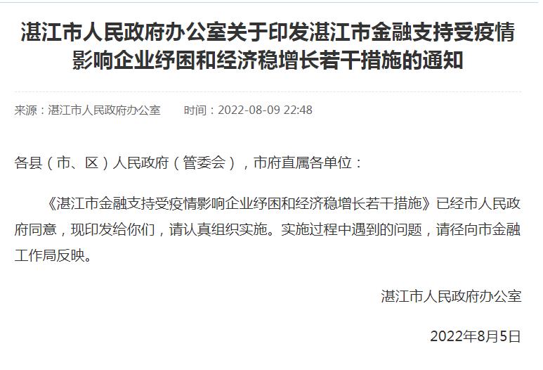 中新網(wǎng)8月10日電 廣東省湛江市人民政府網(wǎng)站9日發(fā)布《關(guān)于印發(fā)湛江市金融支持受疫情影響企業(yè)紓困和經(jīng)濟(jì)穩(wěn)增長若干措施的通知》,提及促進(jìn)房地產(chǎn)市場(chǎng)平穩(wěn)健康發(fā)展金融服務(wù)等方面的措施。