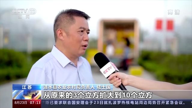 漣水縣農(nóng)業(yè)農(nóng)村局負(fù)責(zé)人 陸士國(guó):針對(duì)這段時(shí)間的高溫天氣,我們又對(duì)小型移動(dòng)式冷庫進(jìn)行了升級(jí)改造,從以前3個(gè)立方擴(kuò)大到10個(gè)立方,保電時(shí)間從半個(gè)小時(shí)擴(kuò)大到現(xiàn)在的兩個(gè)半小時(shí)。