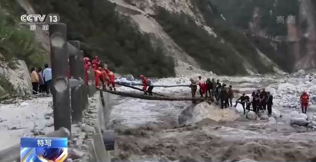 地震發(fā)生后,磨西鎮(zhèn)周邊有多個村子的人員受傷,5日下午,通往外界的唯一道路被滑坡和塌方阻斷,黨員突擊隊率先通過兩根供水管道和三根凌空的鋼索進(jìn)入村子。