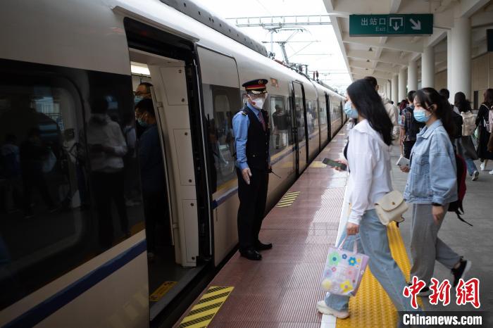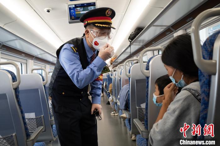 “請保管好自身財物,看管好小孩,照顧好老人,上下車注意腳下安全。”數(shù)百名乘客陸續(xù)上車后,鐘靜開始在車廂里巡視。疫情防控期間,他要提醒大家戴好口罩。遇到行李架上行李擺放不規(guī)范,他要動手整理。同時,他還負責整列4節(jié)車廂的查票、補票工作。