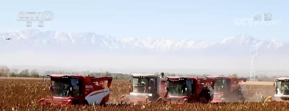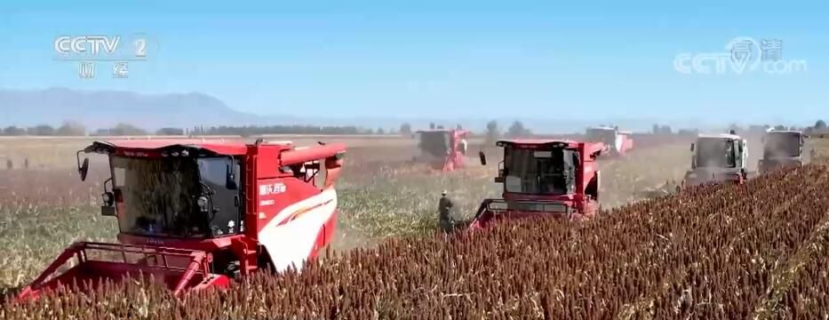 央視網(wǎng)消息:金秋時(shí)節(jié),甘肅省張掖市民樂縣的1.2萬畝高粱已經(jīng)成熟了,紅色的高粱和穿梭的聯(lián)合收割機(jī)構(gòu)成一幅色彩艷麗的豐收畫卷。