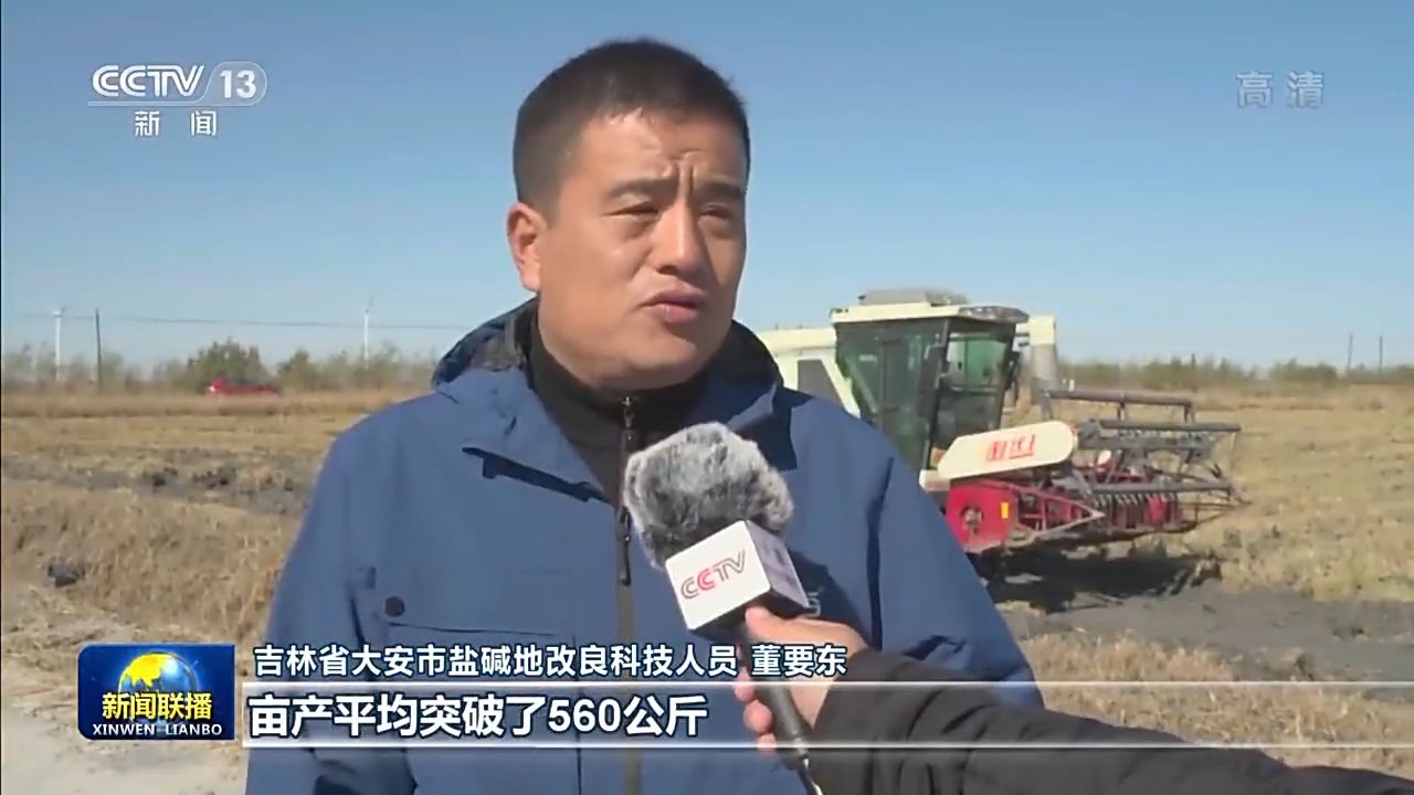 吉林省大安市鹽堿地改良科技人員 董要東:經(jīng)過(guò)我們實(shí)打?qū)嵤諟y(cè)產(chǎn),畝產(chǎn)平均突破560公斤。