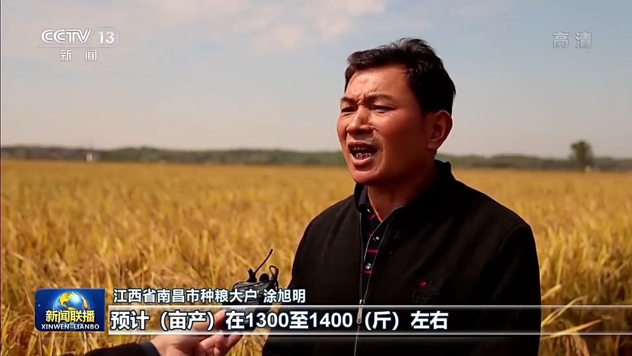 江西省南昌市種糧大戶 涂旭明:中稻長(zhǎng)得非常好,預(yù)計(jì)(畝產(chǎn))在1300至1400(斤)左右,比去年大概增產(chǎn)了100斤以上。