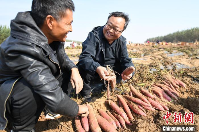 圖為河北薯農(nóng)展示今年豐收的紅薯。 鄭晨子 攝