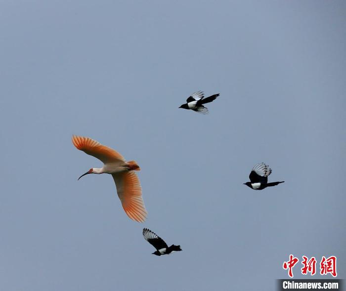 朱鹮和喜鵲打架其實是一種爭奪領(lǐng)域的行為,在自然界是很普遍也很正常的。朱鹮在野生環(huán)境中,不光要對付老鷹、蛇類等天敵,還要學會與競爭對手烏鴉、喜鵲等“打交道”,趨利避害,不斷增強自然生存本領(lǐng)。